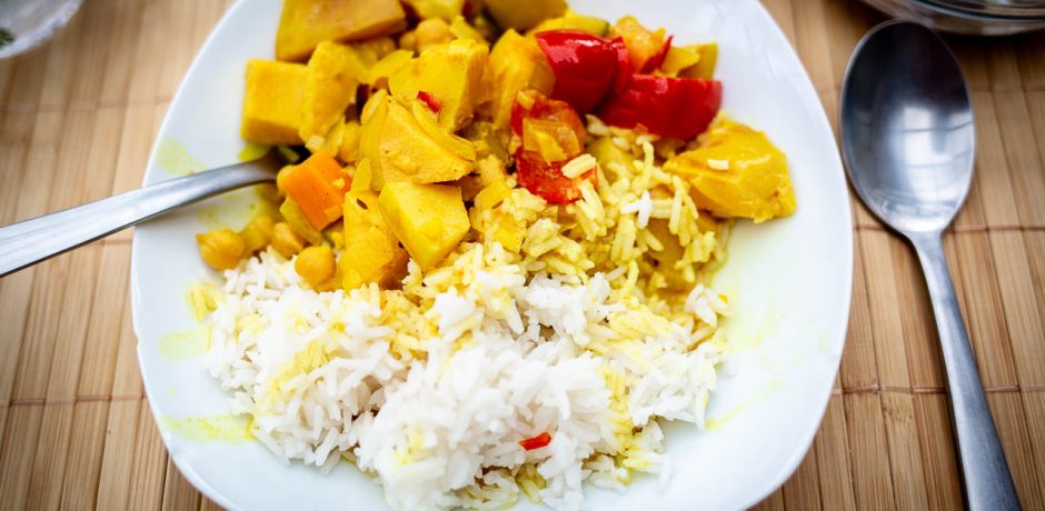 Das Curry ist eine reichliche Menge. Man kann übrig gebliebenes Curry in mehrere Portionen aufteilen und für späteres Essen einfrieren
