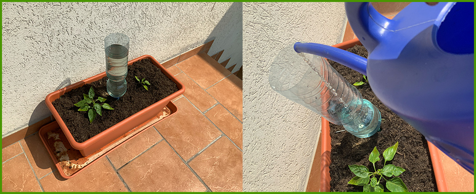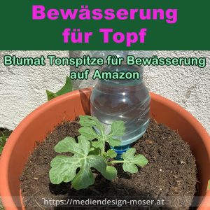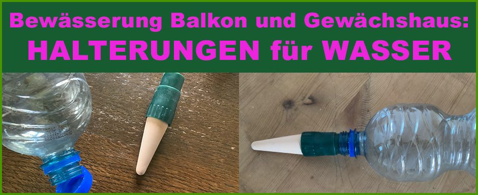 Ich verwende ausrangierte Wasserflaschen, deren Boden ich abschneide und dann auf eine Blumat-Tonspitze stecke. Die Flasche samt Tonspitz stecke ich in meinen gewünschtn Topf, dann kann ich ganz bequem Wasser in die Flasche einfüllen, die Tonspitze sorgt dafür, dass das Wasser ganz ganz langsam abgegeben wird und schon kann nichts mehr austrocknen.